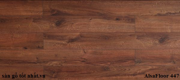 Sàn gỗ AlsaFloor 447, có màu sắc tự nhiên của vân gỗ Sồi sơn màu cánh gián nhạt.