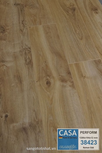 Sàn gỗ Casa 38423 là dòng sàn gỗ 12mm cao cấp của tập đoàn Classen, một thương hiệu nổi tiếng của sàn gỗ công nghiệp được sản xuất tại Đức. Cốt gỗ sạch, không độc tính, chịu tải lớn, khả năng chịu nước cao. Vân gỗ thiết kế như vân gỗ tự nhiên cùng màu sắc đẹp, hiện đại.... mang lại cho sàn gỗ Casa một vóc dáng lịch lãm trong không gian nội thất. Sản phẩm có chất lượng tương đương với những dòng sàn gỗ Thụy Sỹ, hay sàn gỗ Malaysia...