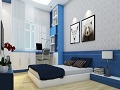 Nội thất kết hợp giữa 2 màu chủ đạo trắng - xanh nưóc biển. Ảnh: Không Gian Hoàn Hảo. |