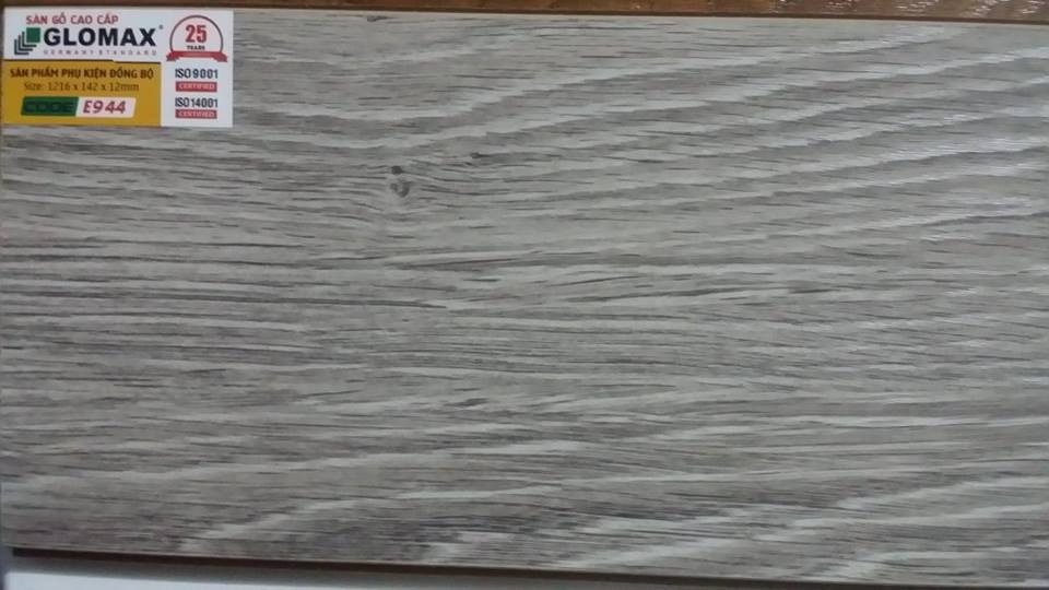Sàn gỗ Glomax E944 trong nhóm sản phẩm sàn gỗ cao cấp Glomax,có màu hạt dẻ nhạt sần vân ánh kim sang trọng, là dòng sản phẩm được sản xuất theo dây chuyền công nghệ hiện đại nhất của Cộng hòa liên bang Đức.Sàn gỗ Glomax là dòng sản phẩm đáp ứng đủ tiêu chí về độ bền cơ học cũng như khả năng chịu nước tốt. Sản phẩm được bảo hành 25 năm. Với cốt gỗ ngang hàng với các dòng sàn gỗ Thailand về độ chịu nước, và hơn hẳn các dòng sản phẩm sàn gô công nghệ khác về bề mặt sần chống xước, về độ đẹp lạ và hiện đại của vân gỗ ngang hàng với bề mặt các dòng sàn gỗ nhập khẩu từ Đức. Sàn gỗ Glomax có những tiêu chuẩn kỹ thuật sau.Bề mặt sần lụa và sần vân chống xước cấp độ Ac4, phù hợp cho môi trường sử dụng có cấp độ đi lại lớn.Cốt gỗ đủ tiêu chuẩn HDF nên chịu tải rất tốt, là cốt sạch, được sản xuất từ nguyên liệu 100% là gỗ tự nhiên không độc tính, đạt tiêu chuẩn cấp E1. Màu sắc và vân gỗ đẹp hiện đại, đáp ứng đa dạng trong phối màu kiến trúc. Là dòng sản phẩm chịu nước tốt, là sản phẩm nên dùng vì đã được nhiệt đới hóa, rất phù hợp với điều kiến sử dụng lâu dài tại Việt Nam. Là dòng sản phẩm ưu thế hơn các dòng sản phẩm khác vì có bộ màu phào chân tường chịu nước, mặt sần với màu sắc đồng bộ với từng mã màu sàn gỗ.