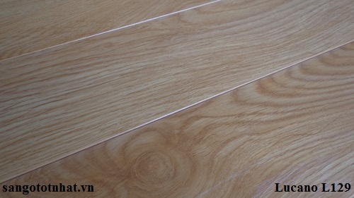 Sàn gỗ Lucano L129 trong dòng sàn gỗ cao cấp Lucano tiêu chuẩn Malaysia có màu vàng nhạt của gỗ Sồi tự nhiên. Sản phẩm mang màu sắc hiện đại, làm tươi sáng thêm trong không gian nội thất. Là dòng sản phẩm có cốt gỗ chịu tải lớn, độ chống thấm nước cao. Bề mặt sần cấp độ Ac5 chống xước tốt, thích hợp sử dụng ở môi trường công cộng, những nơi có mật độ đi lại nhiều, sử dụng được ở những khu vực có độ ẩm cao như nhà bếp, phòng masage, phòng tập... Sản phẩm dày 12 x Rộng 127 x Dài 1215 mm. Hèm khóa A sát nến chống ẩm, tạo mối liên kết chắc chắn và chống cọt kẹt ở những khu vực cốt sàn không phẳng, có khả năng chống thấm nước cao trong điều kiện sử dụng ở những nơi có độ ẩm lớn, giúp tấm gỗ có tuổi thọ lâu dài so với những sản phẩm sàn gỗ thông thường. Mức độ chống nước và chống xước có thể được so sánh ngang với những dòng sàn gỗ Thailand, hay những dòng hàng công nghệ tương đương khác... Với ưu thế là khả năng chịu nước, chống xước, màu sắc đẹp, hiện đại và đặc biệt, sàn gỗ Lucano đã đem lại một sự trải nghiệm về dòng sàn gỗ cao cấp nhưng giá thành rất hợp lí. Vẻ đẹp trên bề mặt của sàn gỗ Lucano tương đương với những dòng sản phẩm nhập từ Châu âu như sàn gỗ Áo, sàn gỗ Đức... Lucano là dòng sản phẩm giá bình dân nhưng chất lượng tương đương với những dòng hàng cao cấp, sàn gỗ Lucano là một trong những sản phẩm thương hiệu nên dùng.