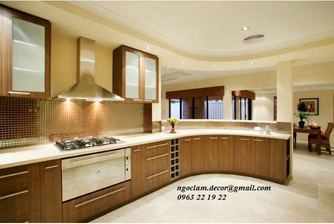 Tủ bếp gỗ công nghiệp Veener Óc chó. Khung cánh, ván huỳnh, Veener và gỗ Óc chó tự nhiên 100% kết hợp.